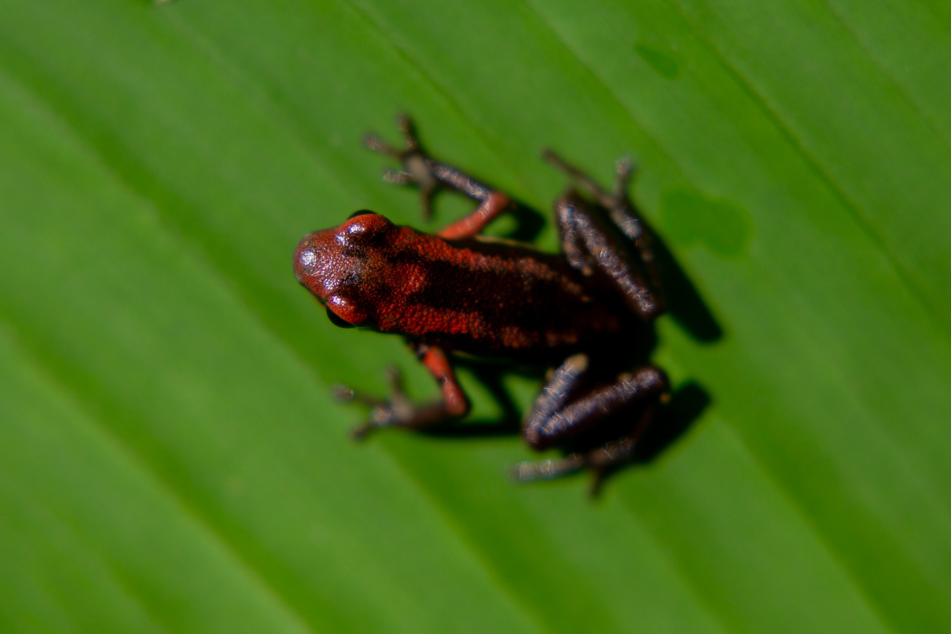 No es fácil encontrar esta rana, si la vemos dense por bien servidos, ellas solo se dejan ver cuando saben que los ojos que las buscan son buenos, susurra Yulfreiler, minutos antes de encontrar el primer individuo de la expedición. Negro, amarillo, azules y verdes aguamarina. La combinación más sutil y eximia posible de estos tres colores dieron a luz a la ranitomeya variabilis, una rana de piel lisa que, con suerte, supera el centímetro y medio de tamaño.