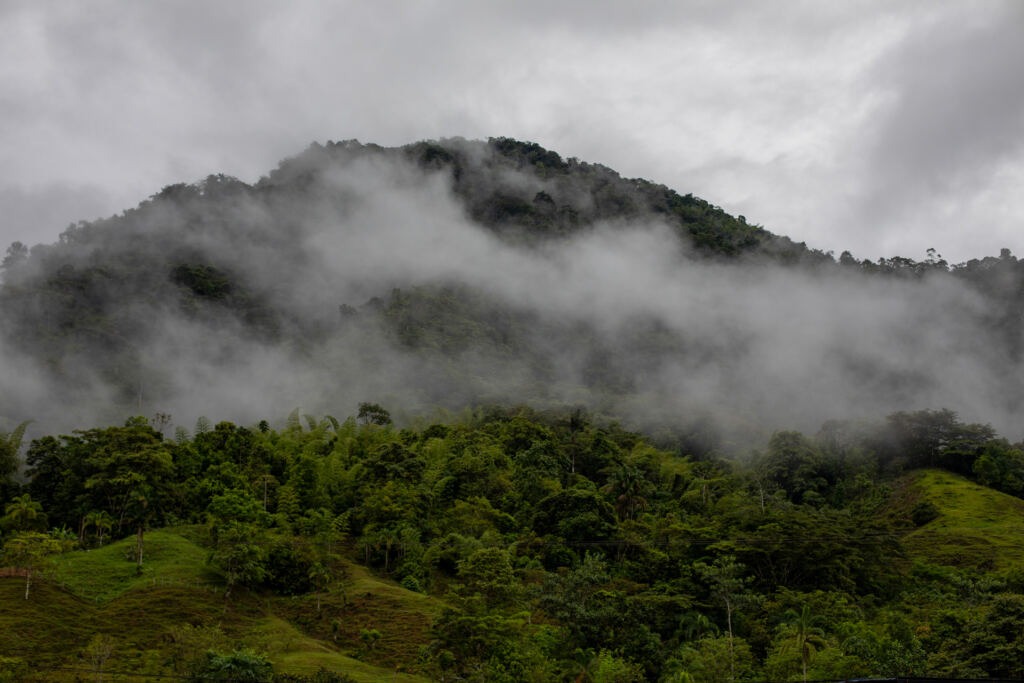 Para llegar allí, desde Pereira son tres horas en auto y, entre bajadas y subidas que tapan los oídos, se divisa en su máximo esplendor el paisaje cultural cafetero. Formidables montañas y profundos valles se revelan entre la perseverancia de todos los verdes imaginables. Una tierra fértil en la que cualquier semilla prende sin ningún esfuerzo y en la que el vapor del café más codiciado del mundo se confunde con las nubes.