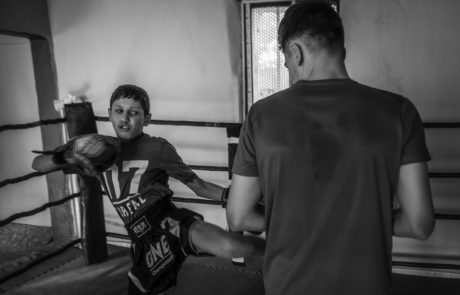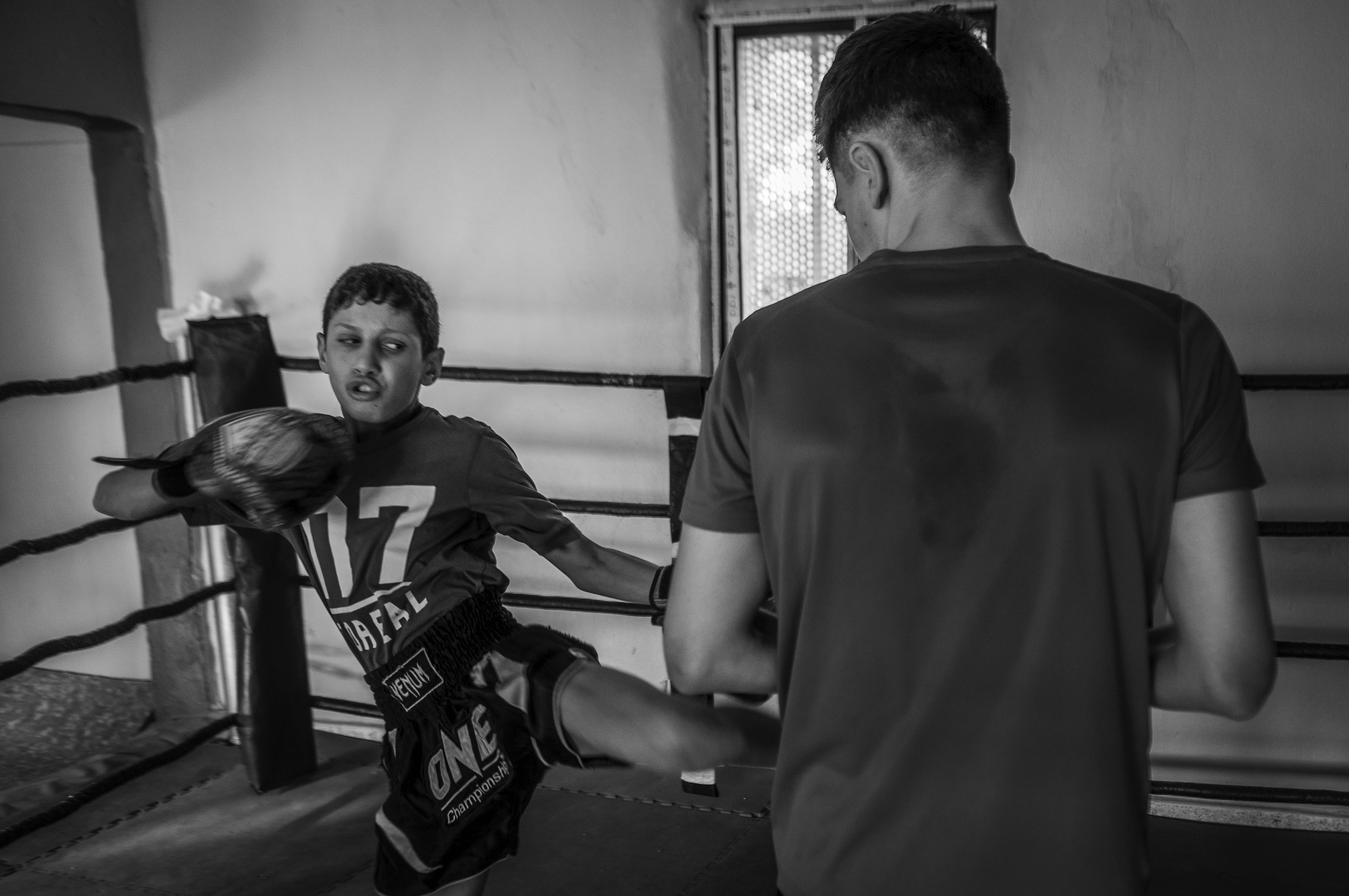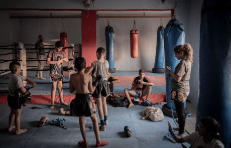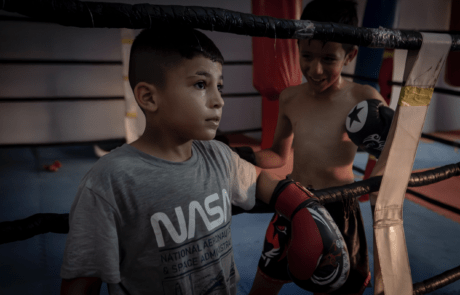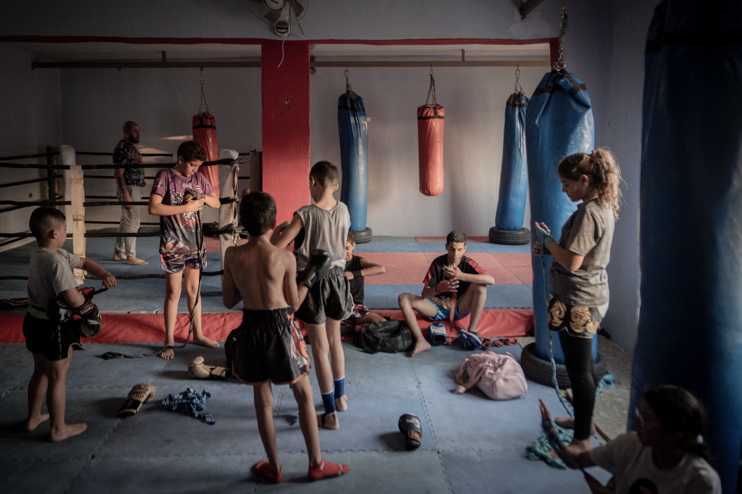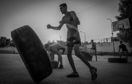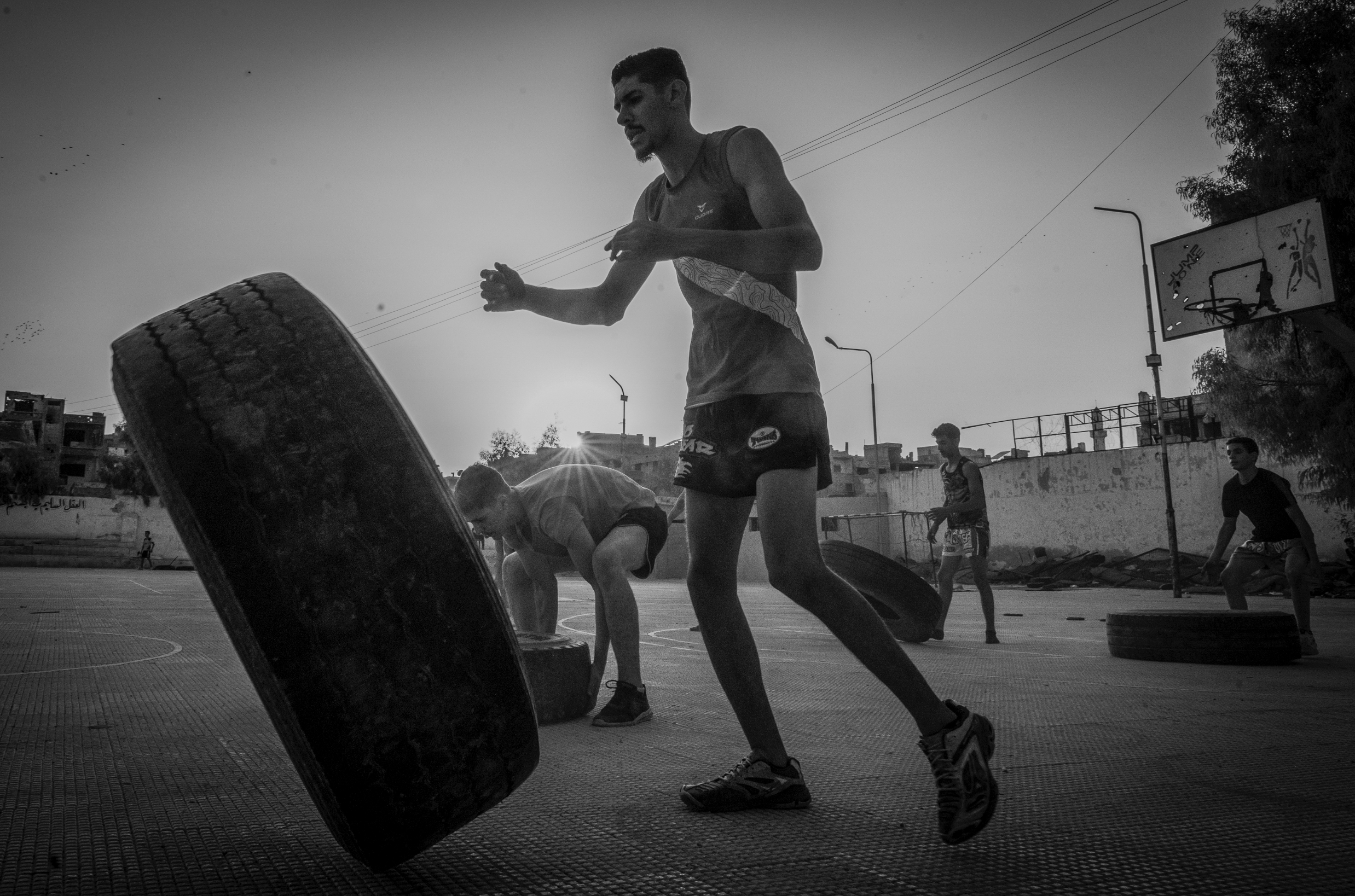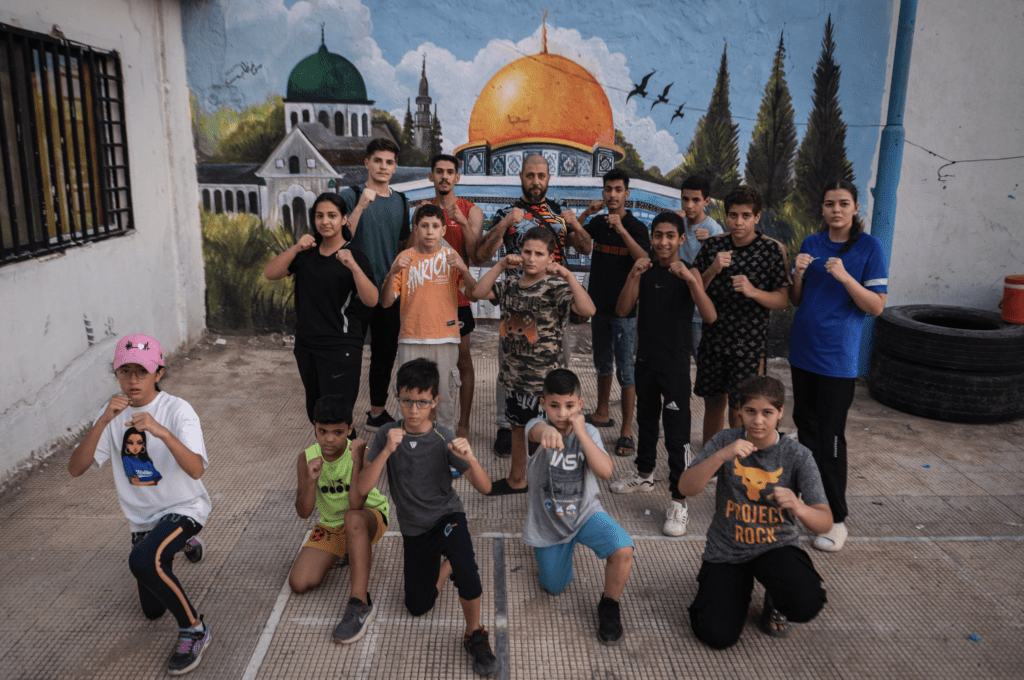 Mahmoud Owuys es un entrenador de artes marciales palestino que regresó a Yarmouk, el campo de refugiados que Al Assad intentó arrastrar al olvido. Con sus propias manos reconstruyó el antiguo gimnasio desde las ruinas donde daba clases antes de la guerra iniciada en 2011. Ubicado en un viejo centro de deportes sobre la avenida Palestina, Owuys completó la larga tarea con el apoyo de los vecinos. Ahora el gimnasio se encuentra recién pintado, lleno de colchonetas y sacos de boxeo. El Muay Thai domina el espacio llenando de vitalidad tanto a niños como a adultos, sirios y palestinos, varones y mujeres dándoles más que un deporte, sino fuerza y esperanza.