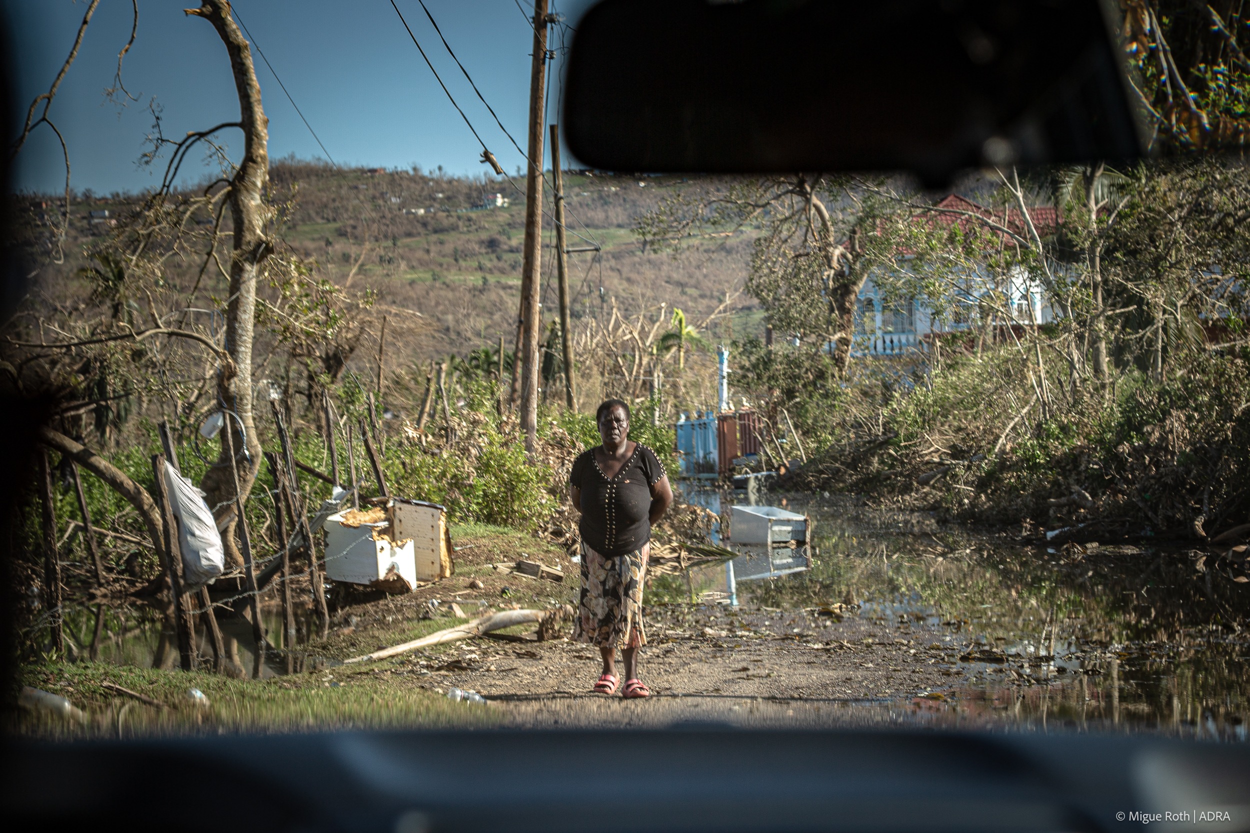 Un mes después del desastre gran parte del suroeste de la isla permanecía a oscuras y las carreteras seguían bloqueadas. Las comunicaciones eran intermitentes en al menos treinta comunidades a las que solo se podía acceder por aire o por mar; y las esperanzas de un regreso total a la normalidad se desvanecían entre el lodo, los escombros y la creciente desesperación. En los pueblos y aldeas rurales, el paisaje era de una devastación total: exuberantes corredores verdes convertidos en una zona de desastre con árboles arrancados de raíz, vegetación calcinada y casas destrozadas por los vientos de 300 kilómetros por hora de la tormenta y las consiguientes inundaciones y deslizamientos de tierra.